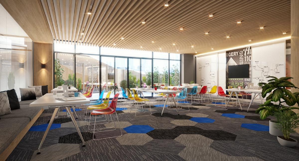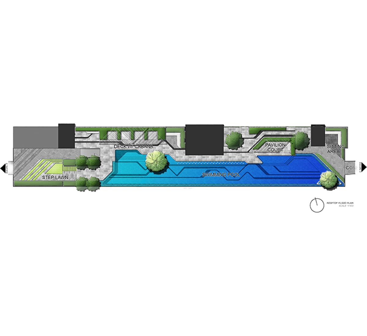 มาที่อาคาร B กันบ้าง ด้านบนนี้ก็เป็น Facilities เช่นกัน สามารถเดินมาจากอาคาร A ได้ แต่ที่ตึกนี้จะมีสวนหย่อม Reading Lounge และสระว่ายน้ำ ส่วนภายในอาคารจะมี Theatre และ Game room