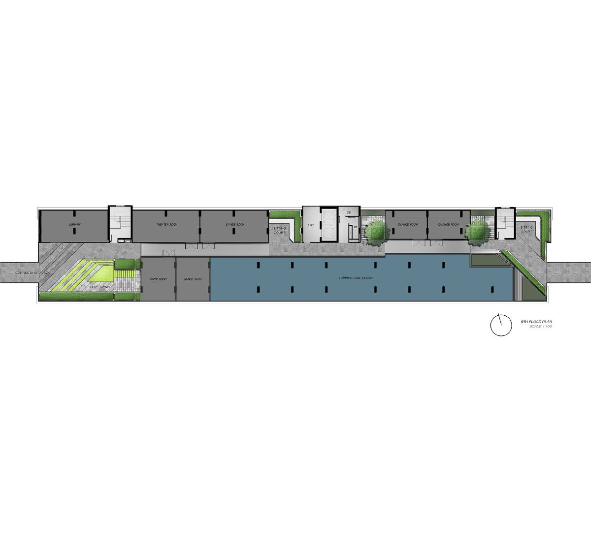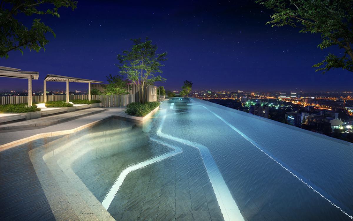 สระว่ายน้ำของโครงการจะเป็นสระระบบเกลือขนาดโอลิมปิค 50x5.30 เมตร อยู่บนนี้ก็ได้ว่ายน้ำชมวิว และไม่ต้องกลัวใครแอบมองด้วย เพราะในแถบใกล้นี้ไม่มีอาคารสูงมาขนาบข้าง