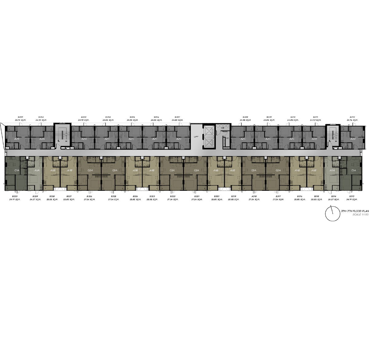 - จำนวนลิฟต์ 2 ตัวต่ออาคาร แบบล็อกชั้น