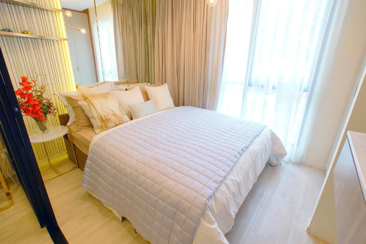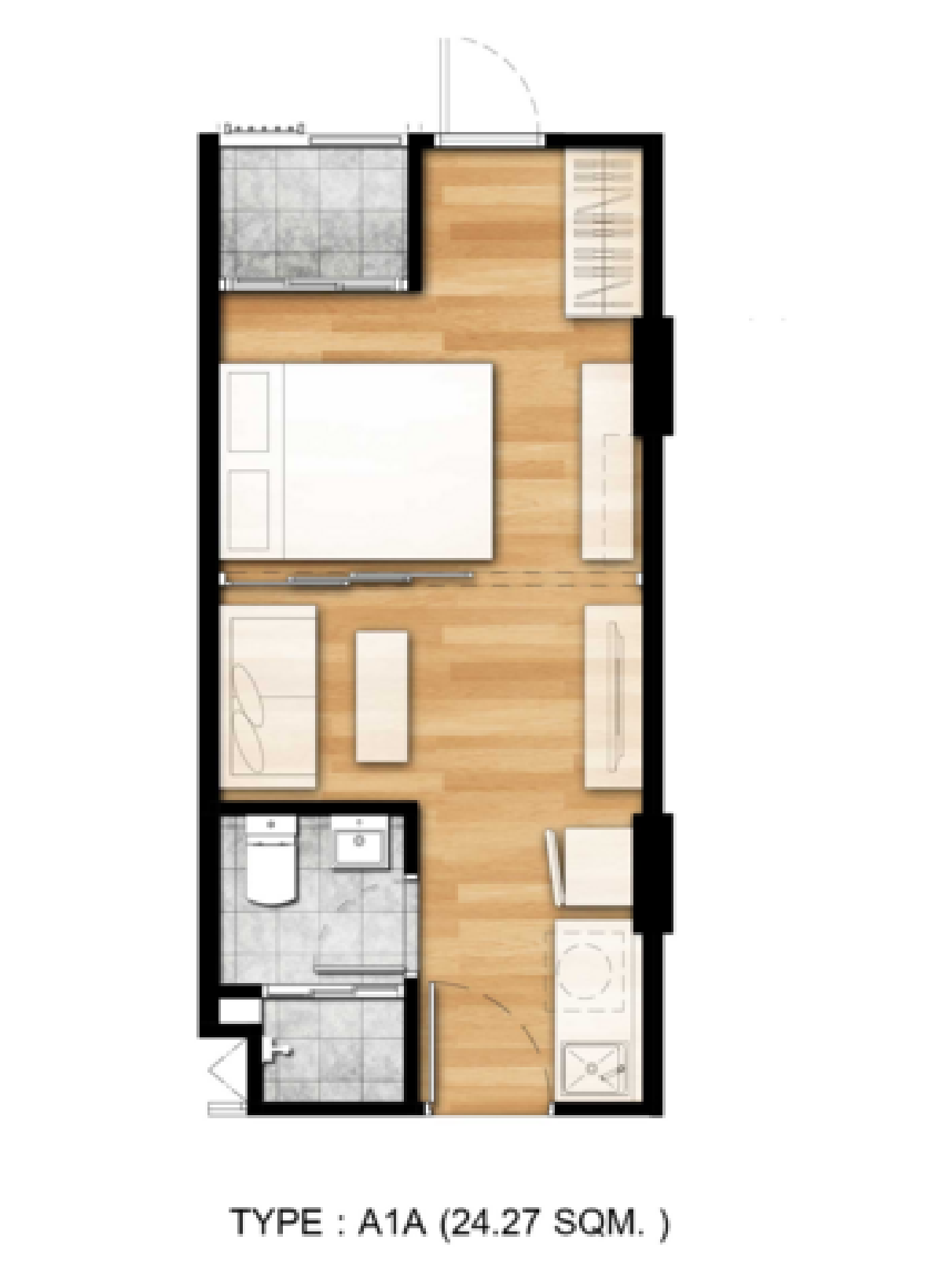 ต่อไปเป็นส่วนของห้องนอนกันบ้าง Type นี้มีห้องนอนห้องเดียว โครงการให้เตียงนอน และตู้เสื้อผ้า