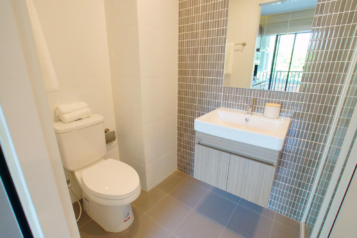 ต่อไปเข้ามาคูห้องน้ำกันบ้าง ประตูห้องน้ำจะอยู่ตรงข้ามกับประตูระเบียงเลย ภายในได้ฟังก์ชั่น 3 การใช้งาน แยกส่วนเปียกส่วนแห้ง