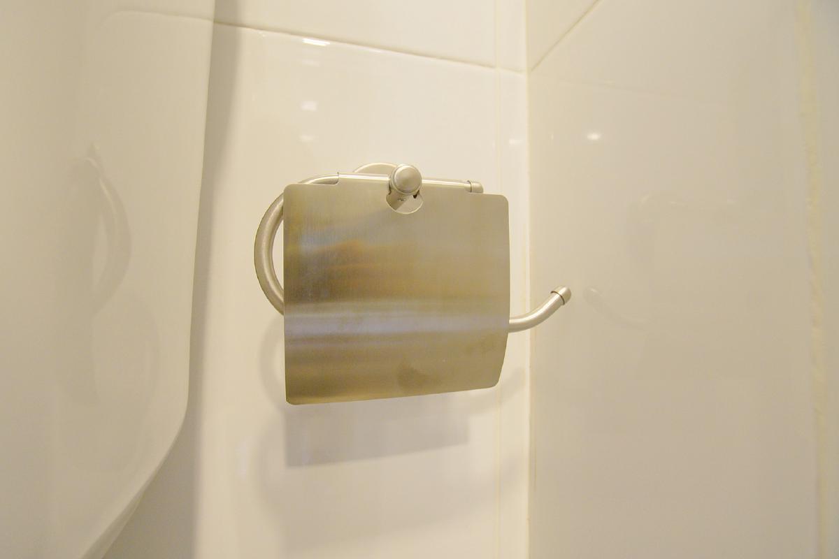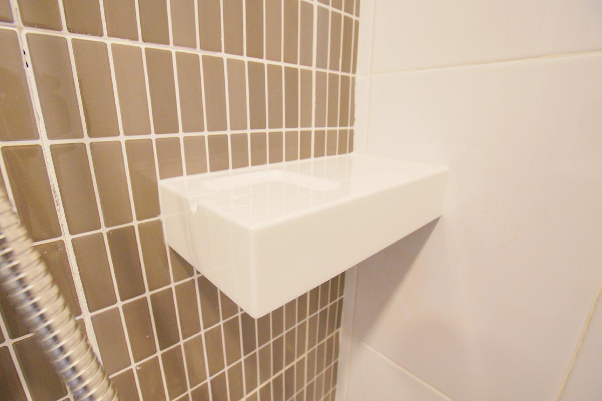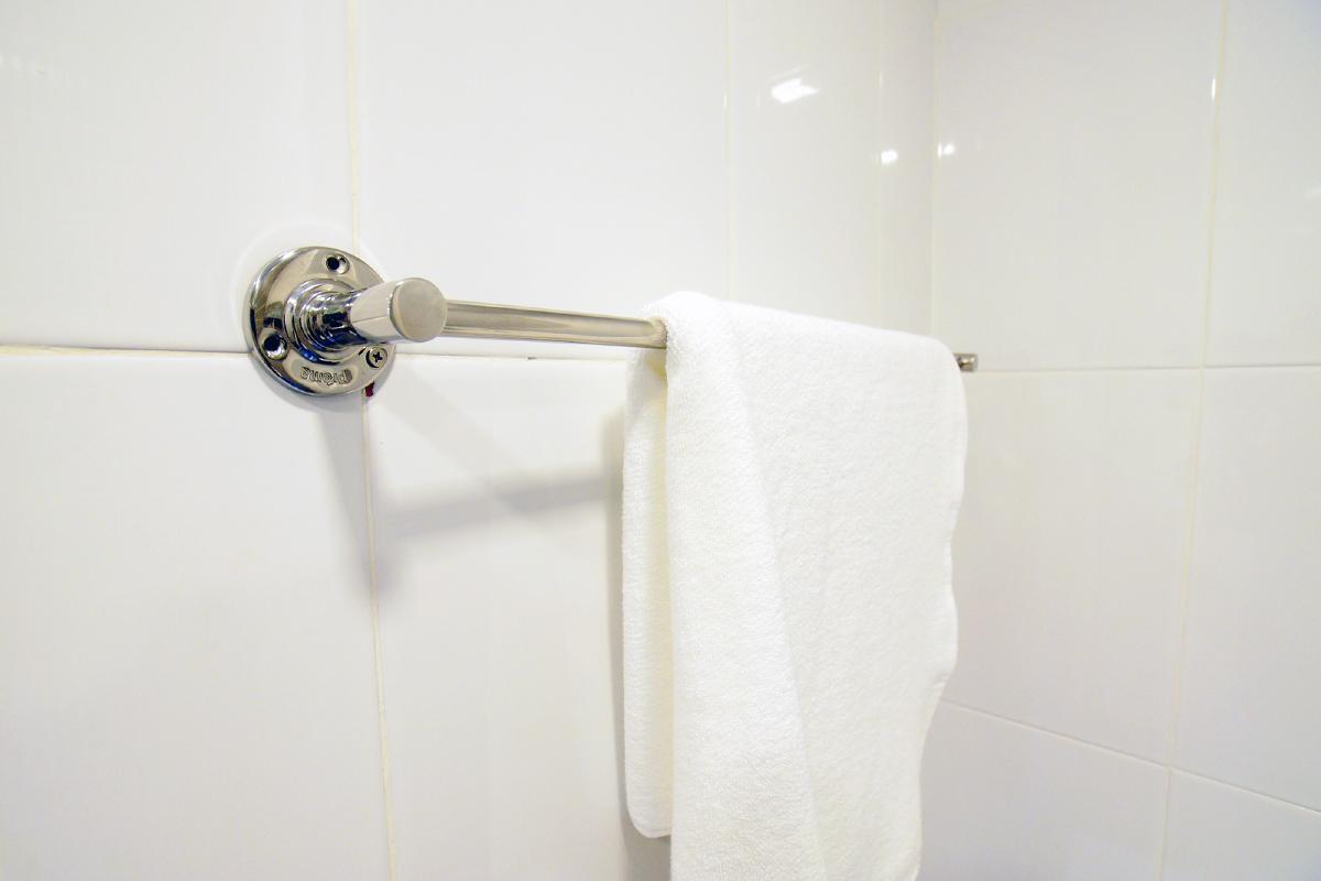 ผนังด้านข้างโถสุขภัณฑ์เป็นที่ติดราวแขวนผ้าเช็ดตัวเวลาอาบน้ำ