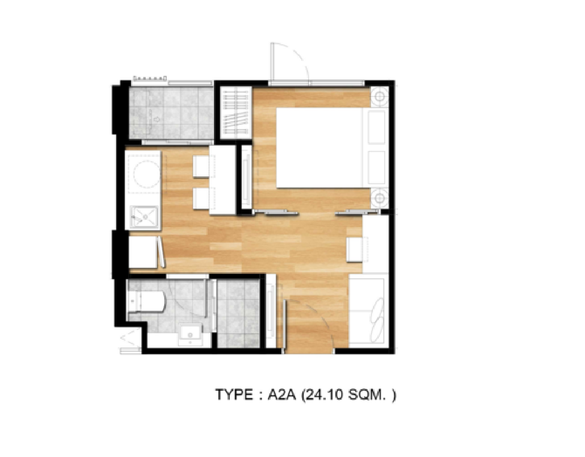 มาดูแบบห้อง 1 Bedroom Exclusive ขนาด 24.10-25.14 ตร.ม. ซึ่งเป็นแบบห้องขนาดเริ่มต้นของโครงการกัน