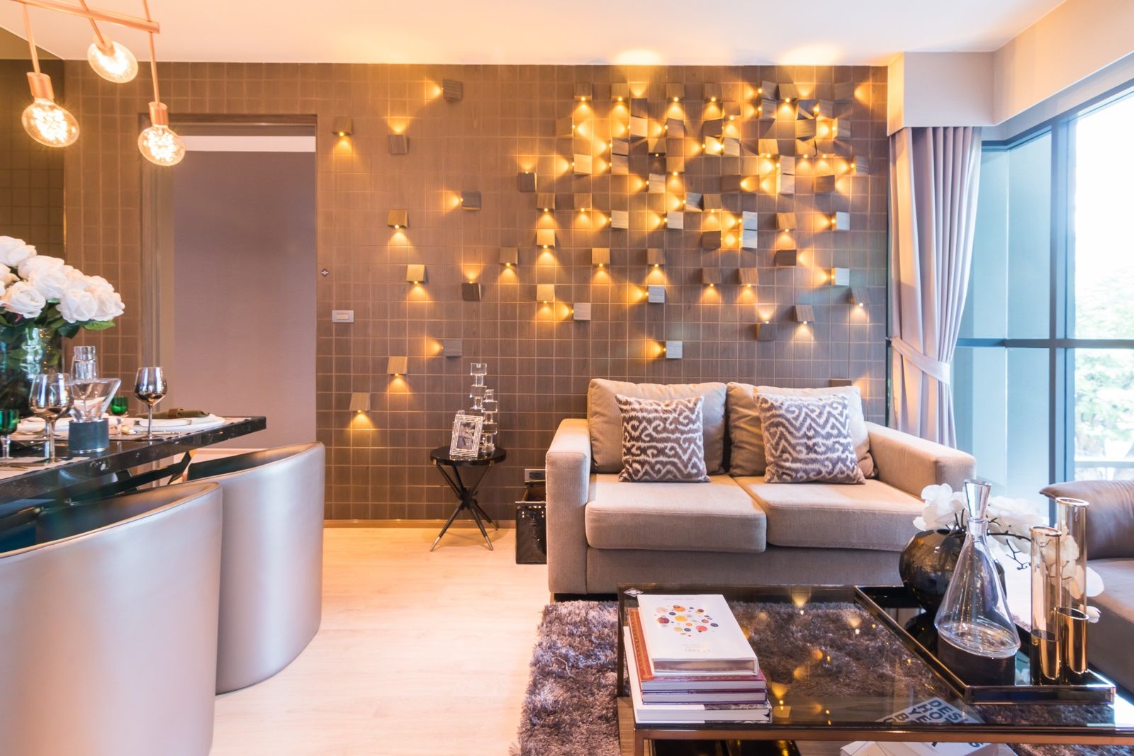 แม้จะตั้งโต๊ะทานข้าว แต่ก็ไม่ได้ทำให้ห้องนั่งเล่นอึดอัดสักเท่าไร