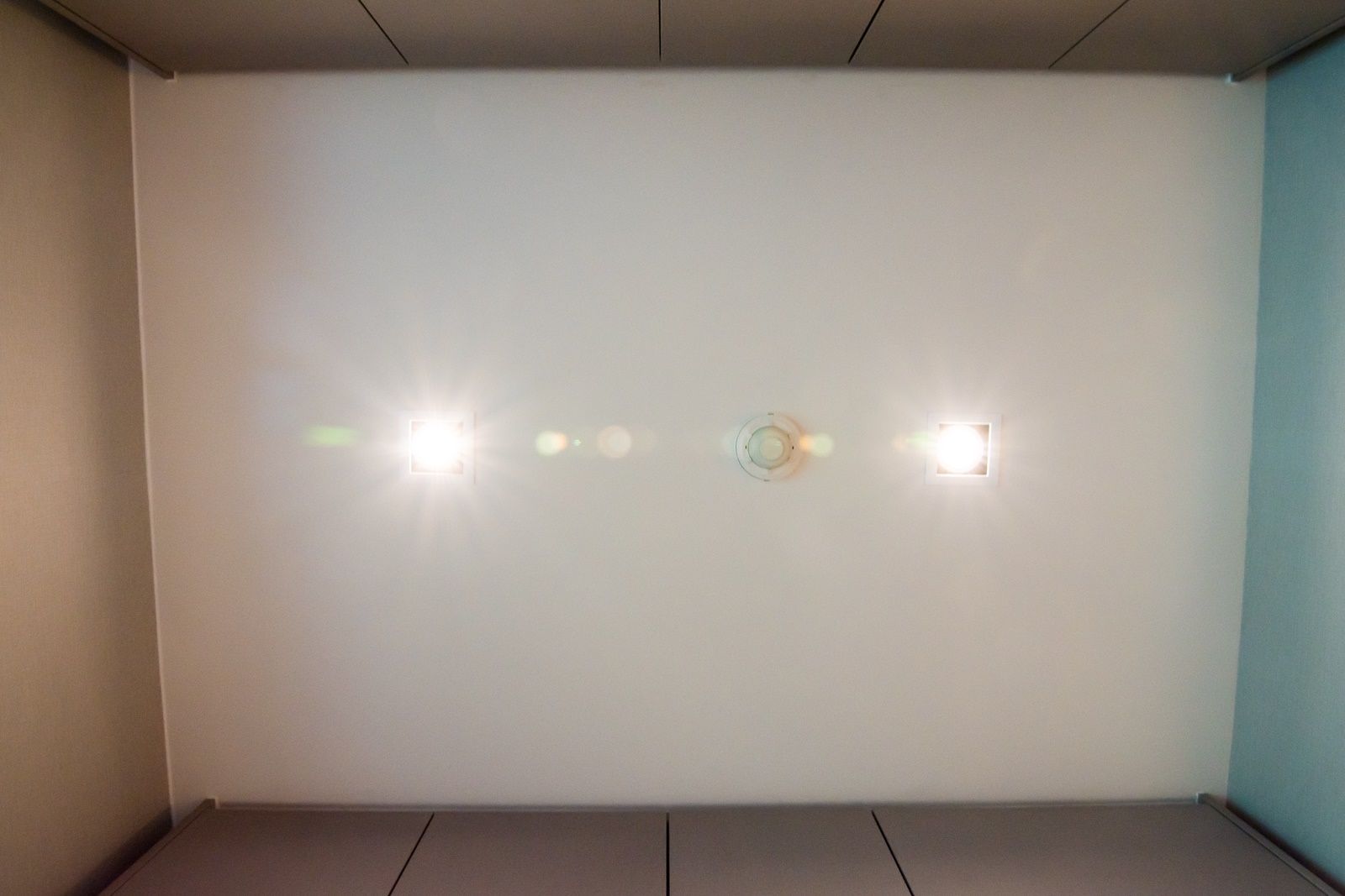 เพดานติดไฟดาวน์ไลท์ 2 ดวงพร้อมติดตั้งระบบป้องกันอัคคีภัยเพื่อความปลอดภัย
