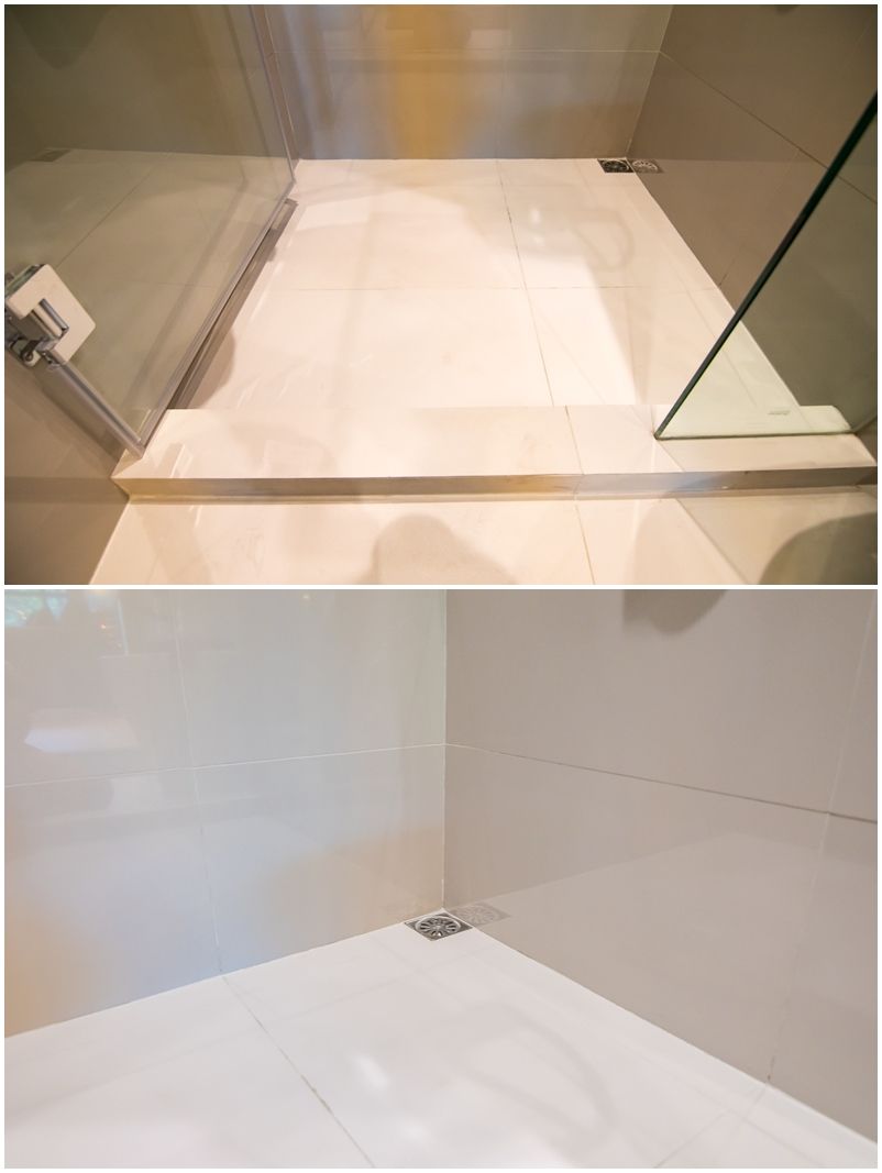 ห้องอาบน้ำยกธรณีสูง 2 นิ้ว กันน้ำไหลออกมาข้างนอก
